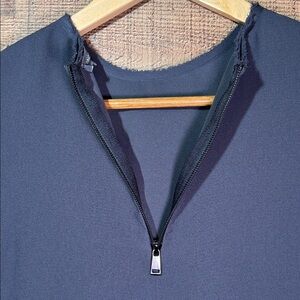 VINCE. sleeveless shift dress that has a raw edge at the neckline and arm openings. Dress features a crossover fabric at the front. Women’s size 0. Gray color. Pre-loved condition.