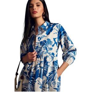 Anthropologie Maeve Bettina Tiered Midi Dress, Blue White, XL