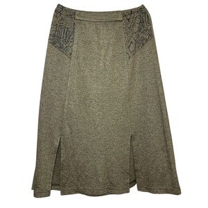 In great pre owned condition. Probably from the 80's. Classic timeless 3 pieces outfit. Jersey knit fabric. Open Poncho Size 12 with tassels. Button up sweater shirt with shoulder pads and front pocket. Midi length pull on elastic waist A -line skirt with side slits. Nice black design print and a contrasting black trim. Convenient set, can be wear separately with many other garments. Please see pictures
