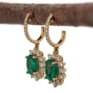 Zambian Emerald Earrings with Natural Diamonds in Solid 14K Gold