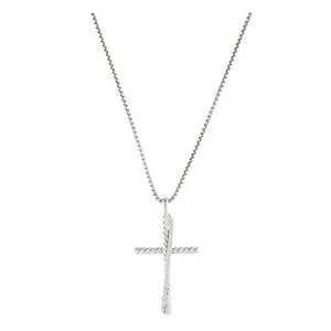 Elegant silver and diamond cross necklace by David Yurman. Features a twisted design. Perfect for any occasion.