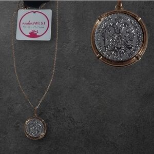 Elevate your style with the Nadine West necklace, featuring a stunning silver coin pendant on a gold frame and chain. Perfect for any occasion. 30"