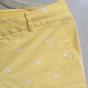 Talbots Women's Yellow Embroidered Butterfly Pattern Bermuda Shorts Size 14P