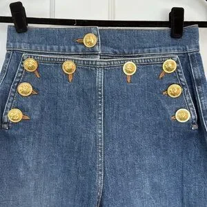 Dundas is an English brand designed by a Norwegian designer. These pants are high waisted with gold buttons in the front and a lace up back.