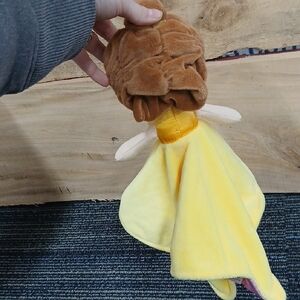 Charming Belle plush blanket. Soft and cozy for playtime. Features vibrant yellow and purple design.