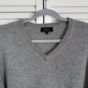 Quince Men’s Mongolian Cashmere V-Neck Sweater Cozy Soft Heather Grey Large
