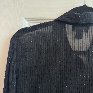 ANN TAYLOR Vintage Silk Beaded Sheer Button Up Blouse