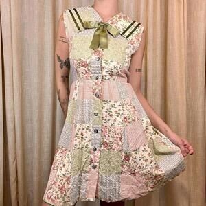 #PatchworkDress #CottagecoreStyle #SailorCollar #FloralMini #VintageInspired