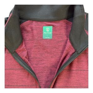 Awesome bundle deal! Selling two gently used Pro Tour performance golf pullovers in size Large. Both are from the same brand (Belk-exclusive golf line), feature moisture-wicking, stretchy polyester fabrics for comfort and swing freedom, and are perfect for layering on cooler golf days, practice, or casual athleisure. Colors coordinate well—one cool teal/green textured, one warm maroon with subtle stripes and black accents.