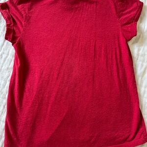 Bold red tee with short sleeves. Soft fabric. Casual and stylish. 100% cotton