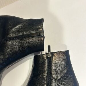 EUC black booties that are a statement piece. Only worn a few times as shown. They have minor discoloration at the top as shown in last pics but not noticeable because they are black.