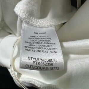 Halston Heritage dress in pont-knit. Surplice V neckline. Short sleeves. Wide, dropped waistband. A-line silhouette. Layered flounce hem. Hidden zip back. Rayon/nylon/spandex. Dry clean. Imported.