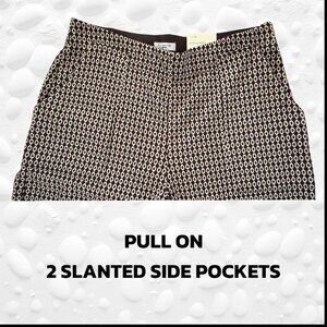 Elevate your wardrobe with these striking wide-leg pants from Max Studio London. Crafted from a heavy knit fabric, they offer both structure and comfort, perfect for cooler seasons or layered styling. The bold BROWN AND WHITE geometric pattern adds visual interest, while the 12" wide straight leg silhouette delivers effortless drama and movement.