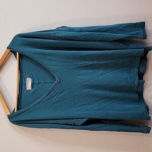 Stylish teal V-neck with long sleeves. Perfect for casual wear. Soft and comfortable fabric.