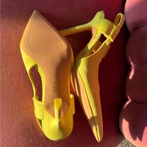 Elevate your look with these striking yellow pointed heels from Zara. Ideal for a bold fashion statement.