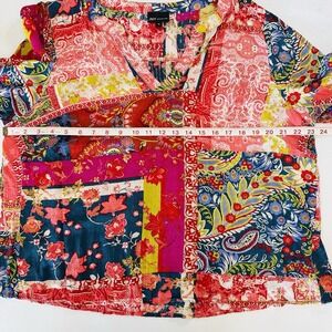 Jones New York JNK 1x Boho Patchwork Blouse Multicolor Paisley Floral Peasant