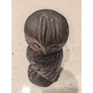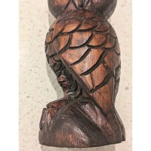 9" Owl Detailed Hand Turned Carved Wood Wooden Sculpture Statue Decor Rustic
