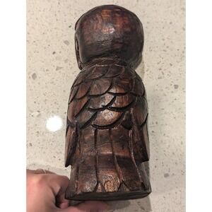 Hand carved rustic wooden owl decor. Dimensions in pictures. One small chip at the back base, as pictured.