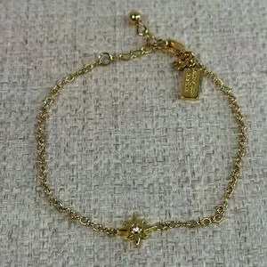 Elegant gold bracelet featuring a star charm with a sparkling center. Perfect for adding a touch of sophistication to any outfit.