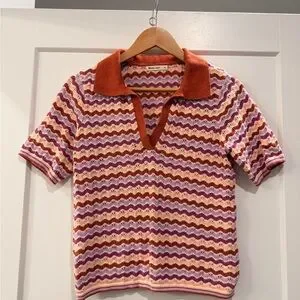 Vibrant blouse with wavy stripes. Features a bold collar. Perfect for a stylish look. Sweater/knit polo