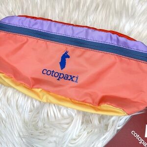 This NWT Cotopaxi Bataan 3L Fanny Pack from the Del Día Collection is the perfect adventure-ready accessory! Every Del Día pack is made using repurposed materials, which means each colorway is 100% unique—no two are ever the same.