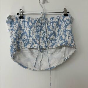 Abercrombie & Fitch Halter Top. Size L | Large. Features a light blue and white floral design, Ruching in the front for a flattering look, cropped length, adjustable front tie, elastic back.