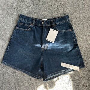 dark blue jean shorts by Reformation. Perfect for casual wear. NEW WITH TAGS AND ORIGINAL PACKAGING.