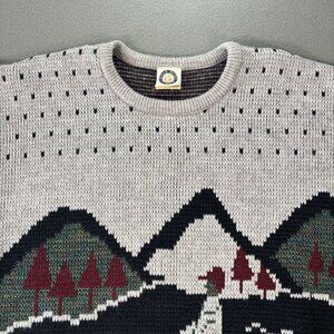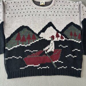 VTG Graphic Knit Sweater Mens L Boat Scenic 80s 90s Cozy Pullover Outdoor Retro
