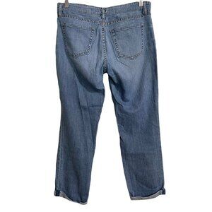 GAP Premium Womens Medium Wash Mid Rise Rolled Cuff Relaxed Ankle Jeans Sz 4/27. NOTE: fraying around hole for button, see photos. Measurements Waist: 30" Inseam: 26" Rise: 8" Offers always welcome! Measurements are approximations taken while hanging