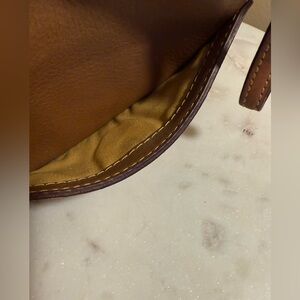The bag has dirty spots on lining and a couple scuffs to exterior leather. The bag works fine and still in good shape. You can either clean lining or leave as is.