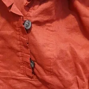 Chic rust blouse with button details. Ideal for versatile styling.