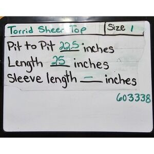 Pit to pit measures approximately 25 inches. Length is approximately 25 inches. Pre-owned in good condition with no holes or major flaws noted. Please review photos for fabric texture, sheerness, and overall condition.