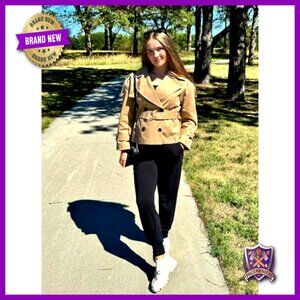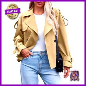 Brand new and unworn, this chic cropped trench coat offers a timeless, casual look perfect for layering over your favorite outfits this season. The windproof design and loose fit provide both style and comfort for everyday wear.