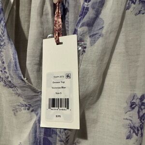 Loveshackfancy size small Floral Lace Trim Blouse - White and Purple