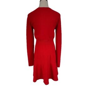 Jason Wu Women's Red Orange Pointelle Knit Mini A Line Long Sleeve Dress M