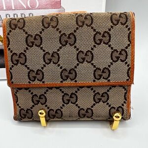 Gucci Brown and Gold Monogram Wallet