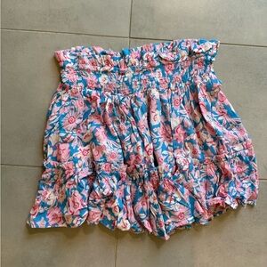 This stylish floral skirt features a vibrant blue and pink design, perfect for adding a pop of color to your wardrobe. Enjoy the comfortable fit and chic look.