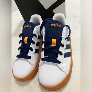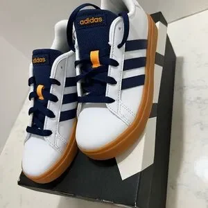 Adidas Kids' White and Navy Sneakers with Orange Accents