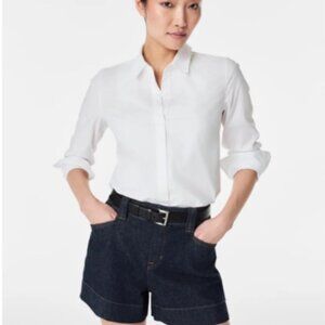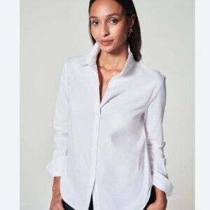 SPANX Stretch Poplin Button Front Pullover Blouse Classic White Size XS