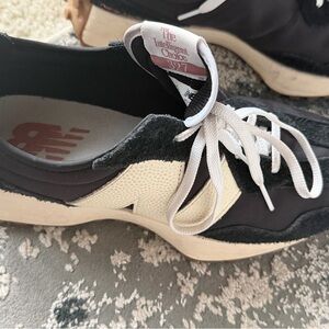 Elevate your look with these New Balance sneakers. Black and cream design. Perfect blend of style and comfort. No scratches or tears