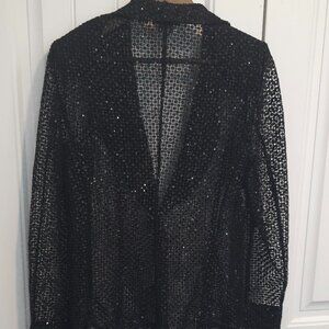 Armani Collezioni Black Sequin Embellished Sheer Lace Jacket - Woman's Size 8