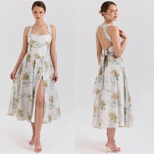 House of CB Minerva Soft Blue Vintage Ribbon Print Chiffon Midi Sundress Size XS