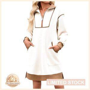 Oversized Sweatshirt Dress Half Zip V Neck Long Sleeve Casual Mini
