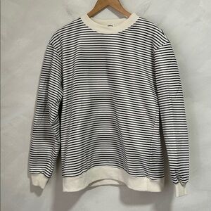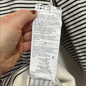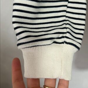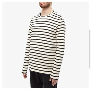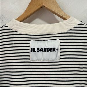 Jil Sander continues to live up to its ‘Queen of Less’ status while understanding the key pieces to a streamlined capsule wardrobe, which should always include a stripy tee. This SS23 addition is woven with horizontal stripes and its beauty lies in its finer details, with a top stitched logo label at the back. 100% Cotton Crewneck Brand Patch Made in Italy Off white/Black 19 inches across the shoulder 19 inches pit to pit 25 inches long Unisex size medium Perfect condition with no flaws!