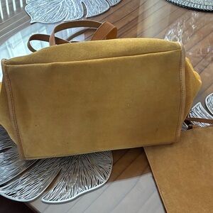 Chic Margot tote in rich brown suede. Features sturdy handles and a spacious interior, ideal for daily use.