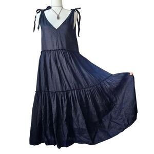 Replay Black Whimsygoth Tiered Dress with Tie Shoulder Strap Bows - Size Small