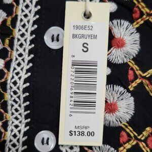 Max Studio Embroidered Black Boho Midi Dress Women Size S