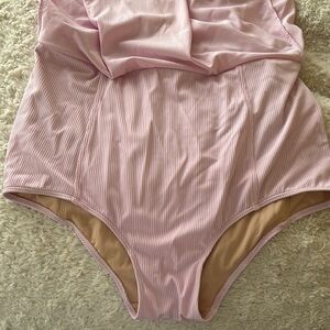 Chic swimwear- light pink ribbed material. Ideal for beach days. NWT, full coverage under the skirt. Size Medium.