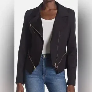 NEW BLANKNYC Denim Psychopath Ponte Moto Jacket - Black / Gold - Large