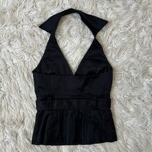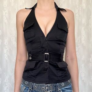 The hottest black fitted halter vest with a belt at the waist. I love the details of the pockets🖤